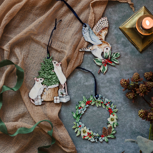 Mice Sustainable Wooden Watercolour Christmas Ornament by Sophie Brabbins