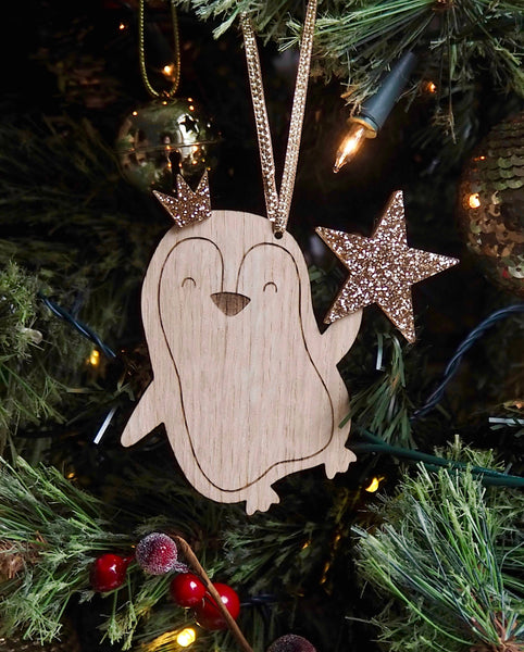 Snowy the Christmas Penguin is bringing lots of sparkle and a little bit of magic and not only that, but she is very cute too! Made from oak finished wood and has laser engraved features for a high quality finish.
