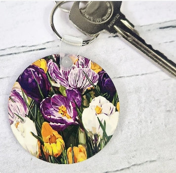 This listing is for a beautiful CROCUS hardwood keyring. The Illustration is taken from the current LOUISE JENNIFER Design Spring/ Summer 2025 Collection.