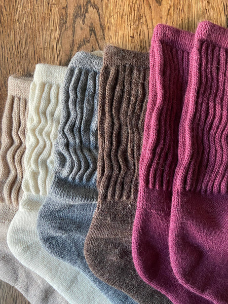 Our Rib Cushion Loop Alpaca Socks are a multi-functional must for every sock drawer. Designed for outdoor wear or as slouch socks for lounging around at home. Long lasting alpaca blend, insulating and extremely comfortable, they can be cold machine washed and dried.