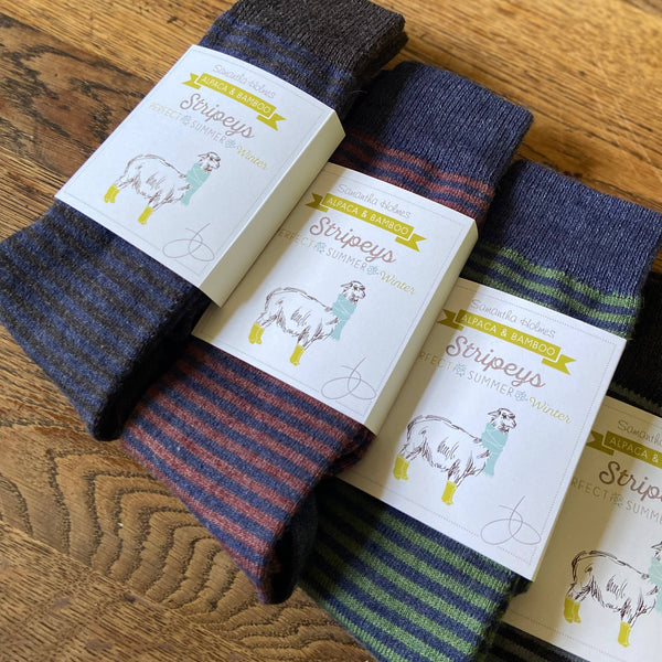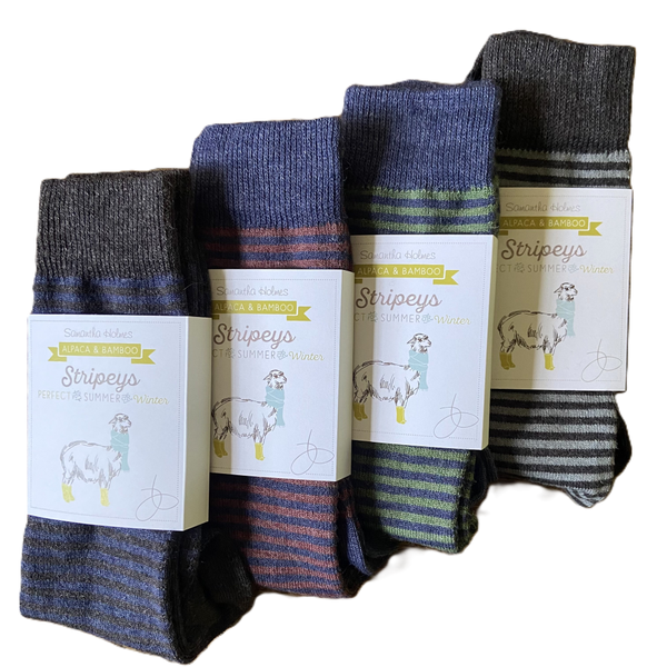 Stay cool in summer and warm in winter with a pair of best selling Samantha Holmes stripey socks. Insulating, Hypoallergenic and incredibly silky soft. These socks can be machine washed at 30 degrees. Avoid tumble drying. Lay flat to dry to keep shape.